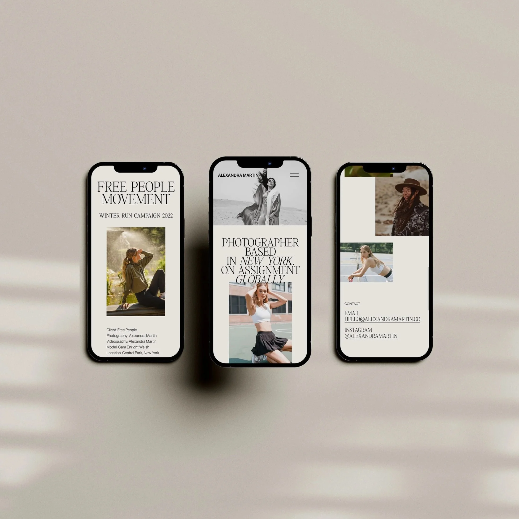 We partnered with Alexandra to develop a refined brand identity and custom website that reflects the emotional depth of her work while highlighting a beautiful portfolio of collaborations with brands such as Free People, Sam Edelman, Alo, Hunter Boots, New York or Nowhere and DKNY.